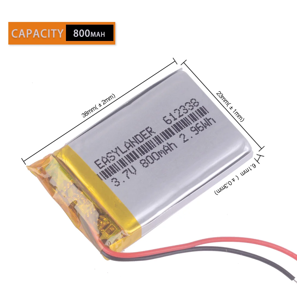 CE ROHS литий-полимерный 3,7 V 800mAh 612338 Li-Po литий-ионная аккумуляторная батарея Lipo Cells для DVR GPS MP3 MP4 сотовый телефон динамик