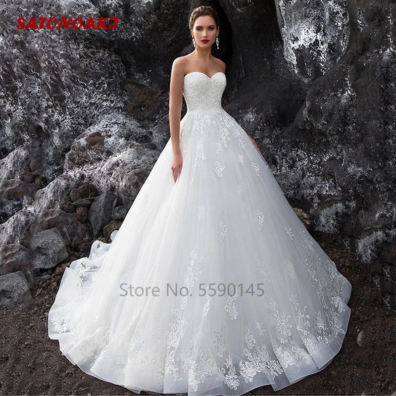 Кружевные свадебные платья без рукавов с аппликацией сердечком, пла...