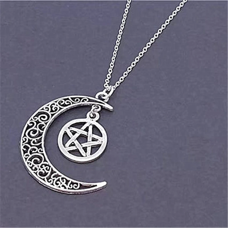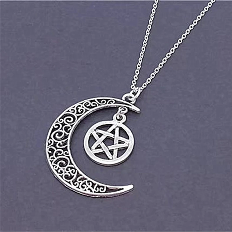 Серебряное покрытие Готический полумесяц подвеска в виде Луны, пентаграмма ожерелье, украшения из сериала сверхъестественное, звезда Pentacle Charm