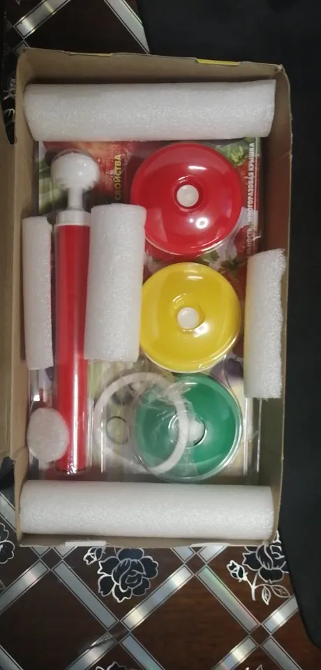 Фото высокого разрешения. Пришло отлично упакованное, откачку выдержало почти до 10% от атмосферного. Прилепил крышку на первую попавшуюся банку, от пыли не протирал и специально ничем края не обрабатывал. За неделю давление внутри поднялось с 11.3 до 13.1 kPa, то есть на 2% от атмосферного. Считаю, что отлично, так как при такой откачке понемногу травят даже запаянные пакеты. Ну и в году порядка 50 недель, так что даже через год крышка вакуумом будет держаться. График давления немного скачет из за скачков температуры. Измерялось датчиком температуры/влажности/давления Ксяоми. Родной насос не особо напрягаясь откачал до остаточного давления в 5kPa, что даже круче, чем мой вакууматор. Знал бы, для теста откачивал бы родным насосом.