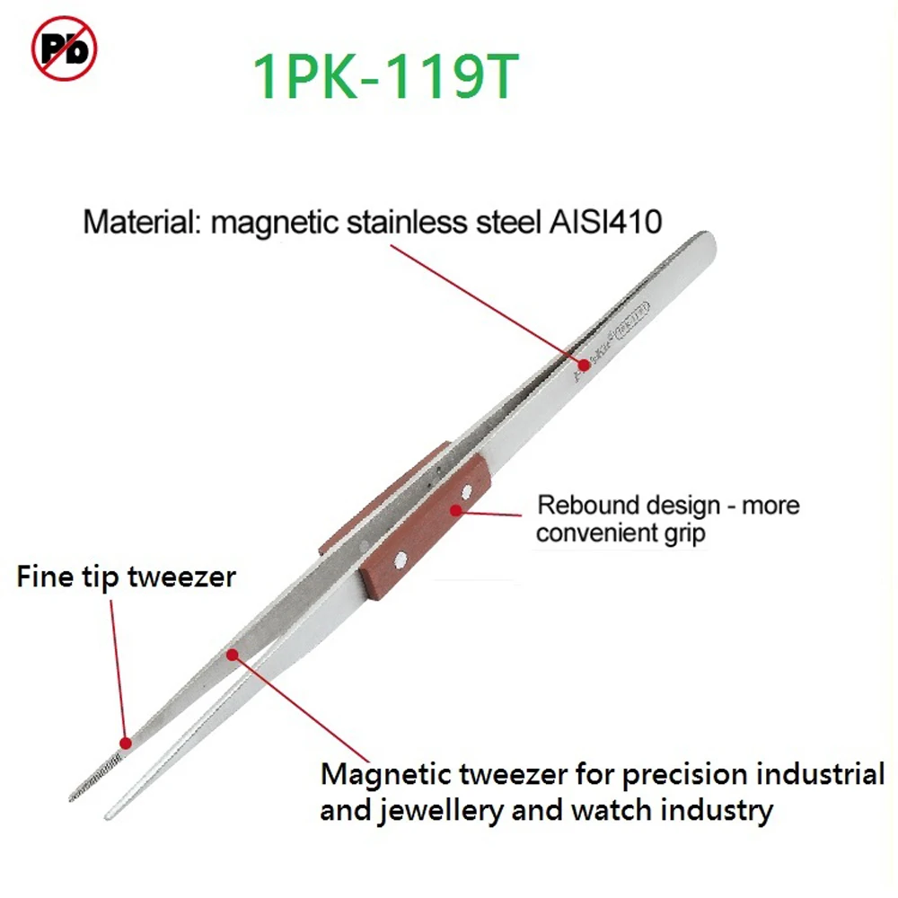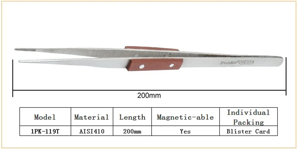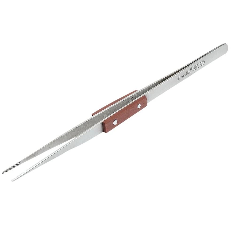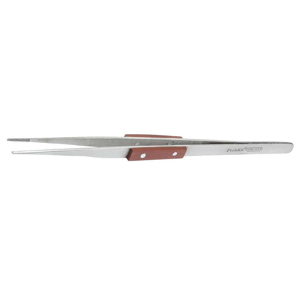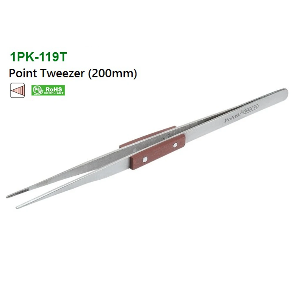 Pro'sKit 1 PK-119 T пинцет с деревянной ручкой из нержавеющей стали с острым тонким наконечником, высококачественный набор прецизионных пинцетов (200 мм)