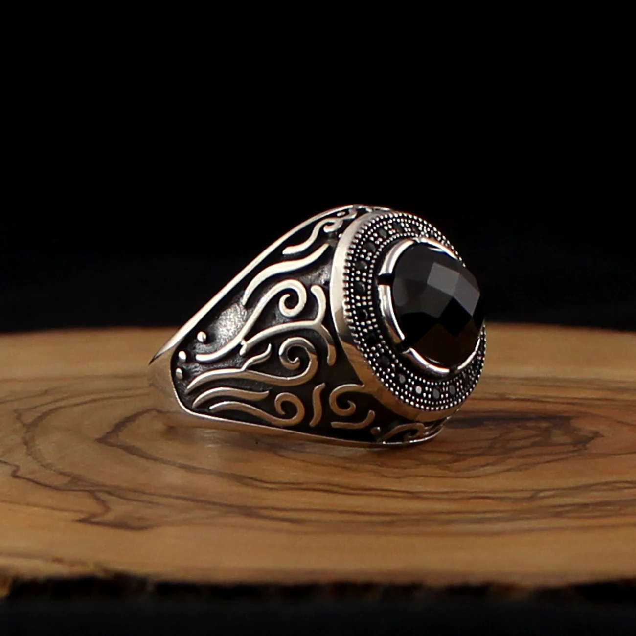 Мужское кольцо ручной работы, из серебра 925 пробы с натуральным камнем, с агатом и цирконием, пукка, ювелирные изделия из оникса, модный винтажный Подарочный аксессуар