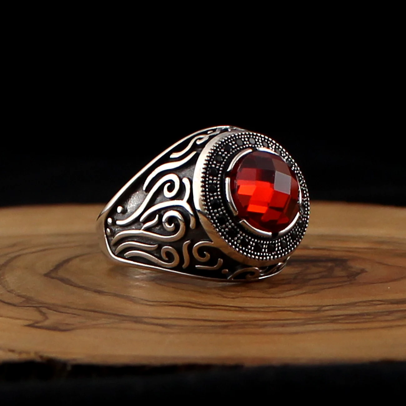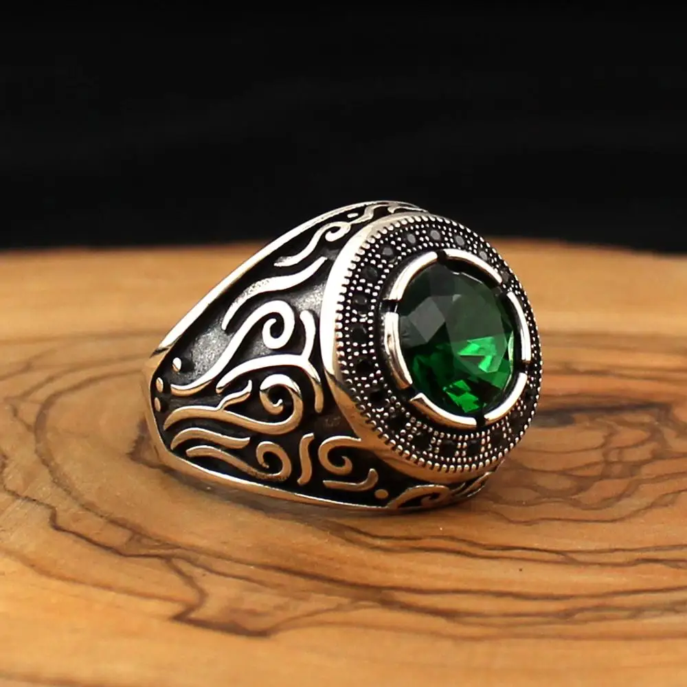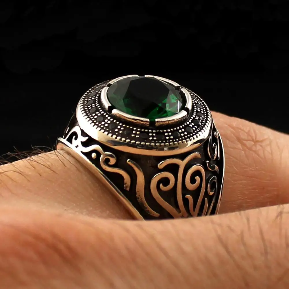 Мужское кольцо ручной работы из стерлингового серебра 925 пробы с ц...