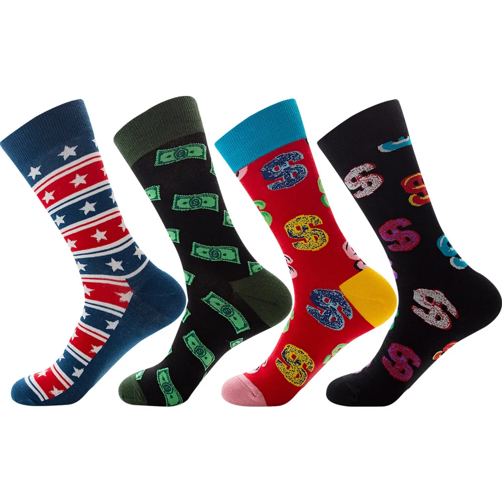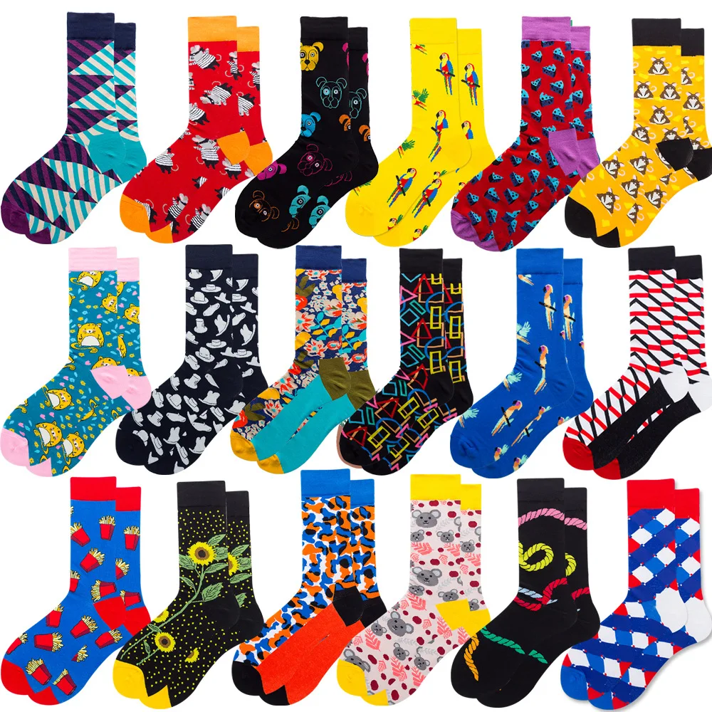 Качественные мужские счастливые носки 40 цветов полосатые клетчатые фрукты Животные Мужские чесаные хлопковые носки