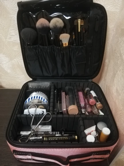 Доставка быстрая, все пришло в целости. Сумка классная, плотная, не маленькая. Все разделения можно достать и переложить как хочется. В общем - я довольна)) Одно маленькое огорчение - цвет. Брала светло-розовую, думала будет нежный цвет. На деле от фото конечно не сильно отличается, но все-таки бликует немного резковатым более ярким розовым. Немного не мой оттенок. Но это так, мелочи)