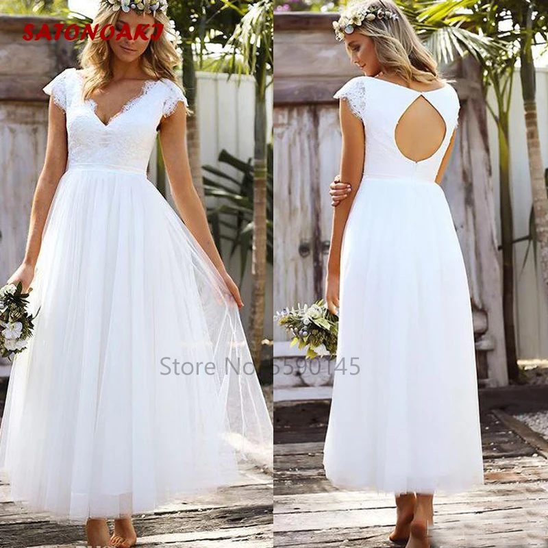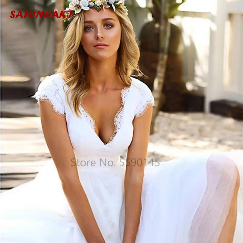 Простые Свадебные платья 2021 Кружевная аппликация Глубокий вырез б...