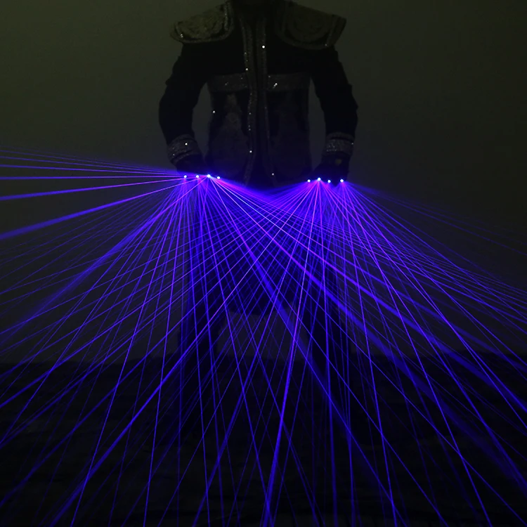 Светящиеся перчатки для музыкального фестиваля, синие и фиолетовые лазерные перчатки для танцев диджея, перчатки для шоу и вечерние