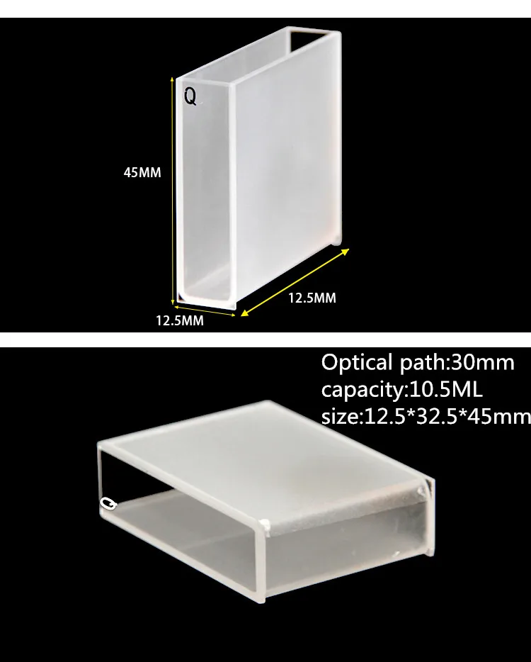 Продавец обещал 2 кюветы, по факту пришла одна. И это не чистый кварц. Очень высокое поглощение в диапазоне 200-400 нм. Это обычное оптическое стекло. Зачем обманывать? Категорически не рекомендую этого продавца.