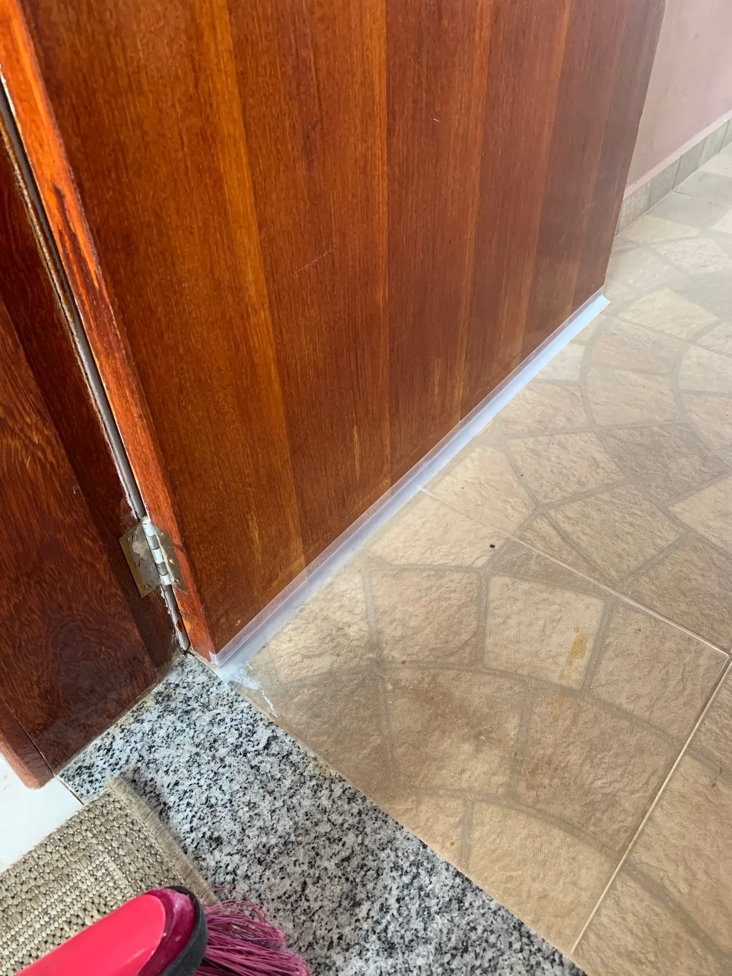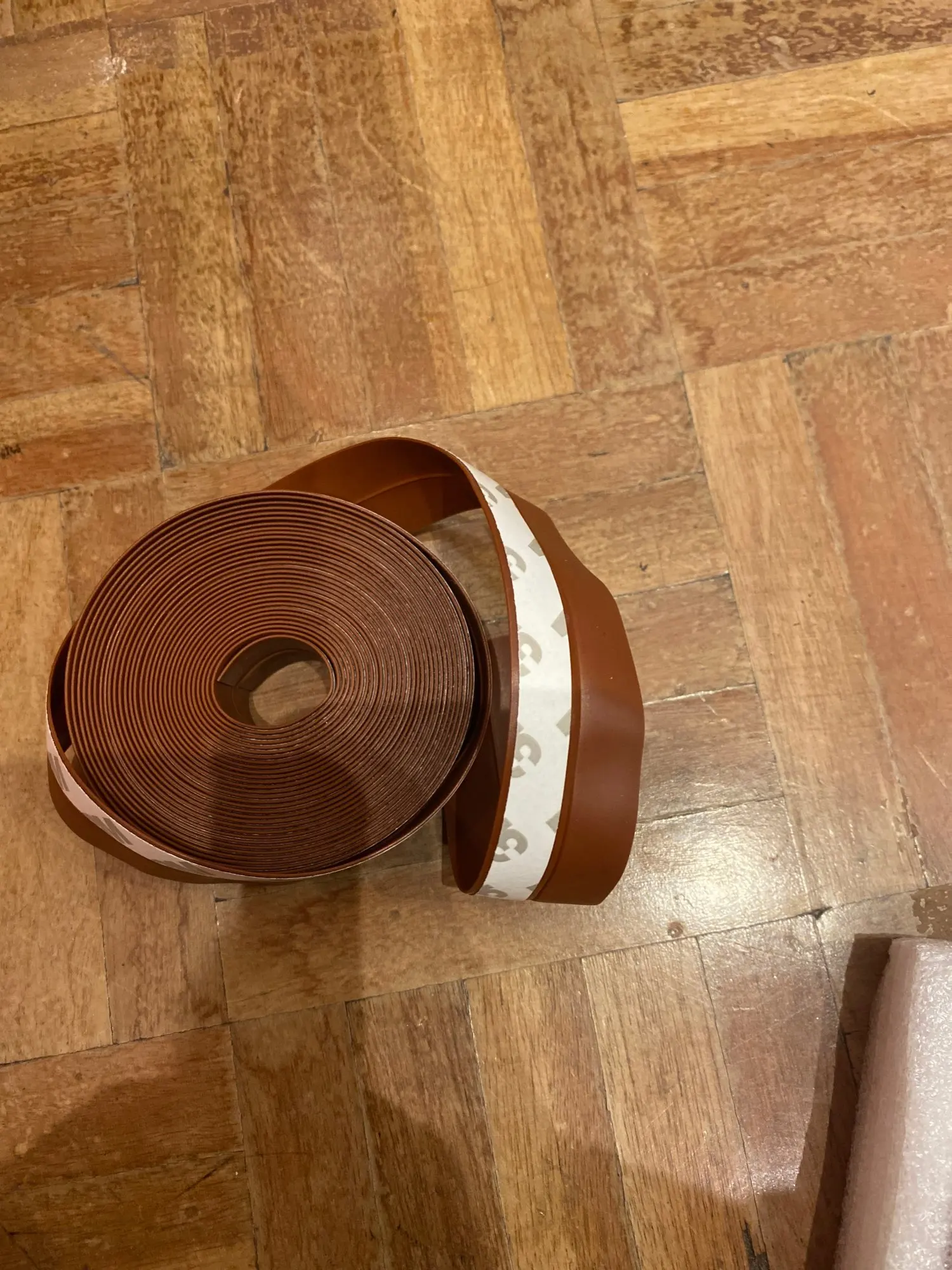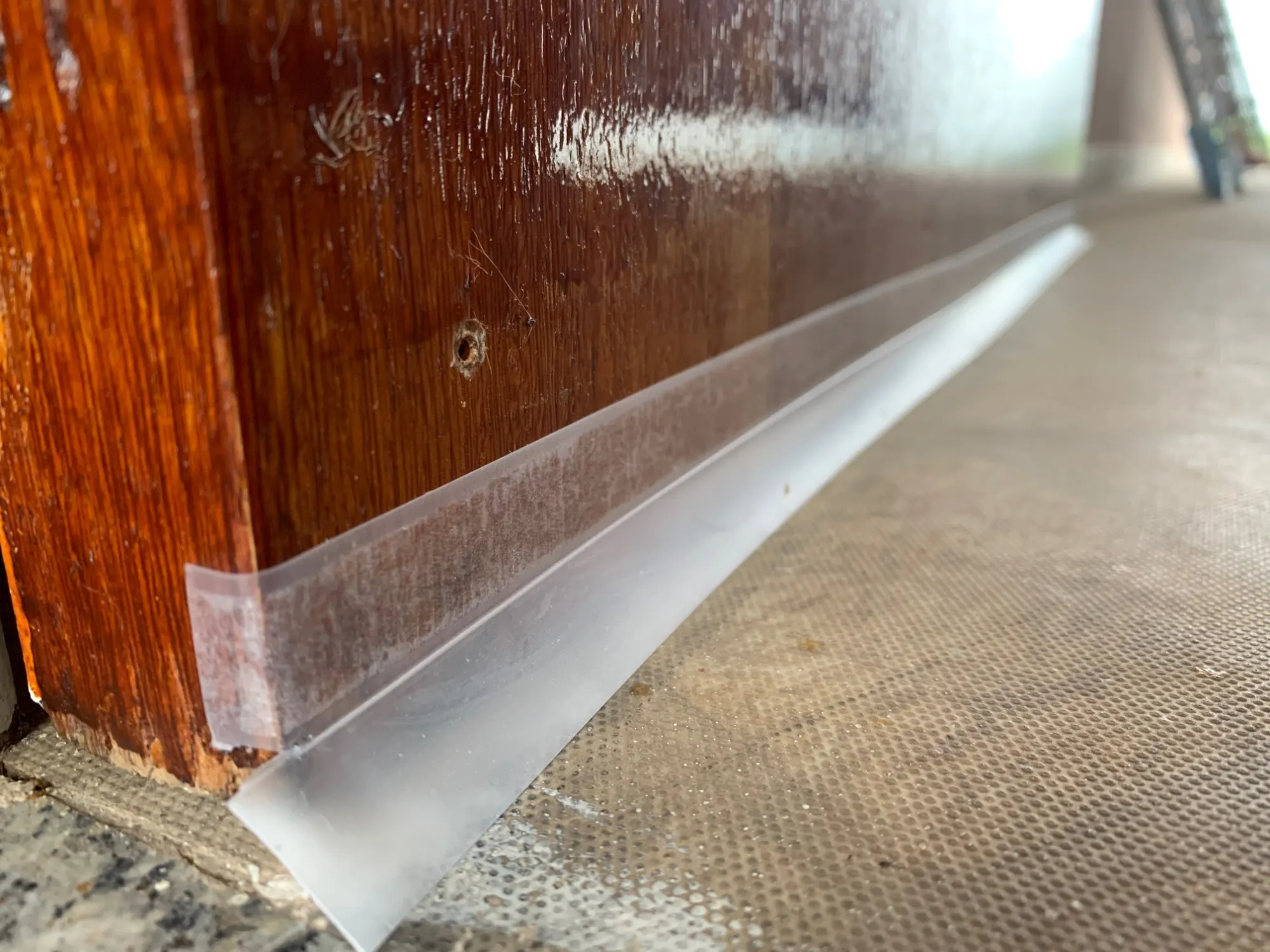 Это отлично. Он выглядит не так хорошо и хорошо работает. У меня был действительно сильный ветер, входящий под мою дверь, и теперь он остановился после крепления этого продукта. Клей кажется многообещающим