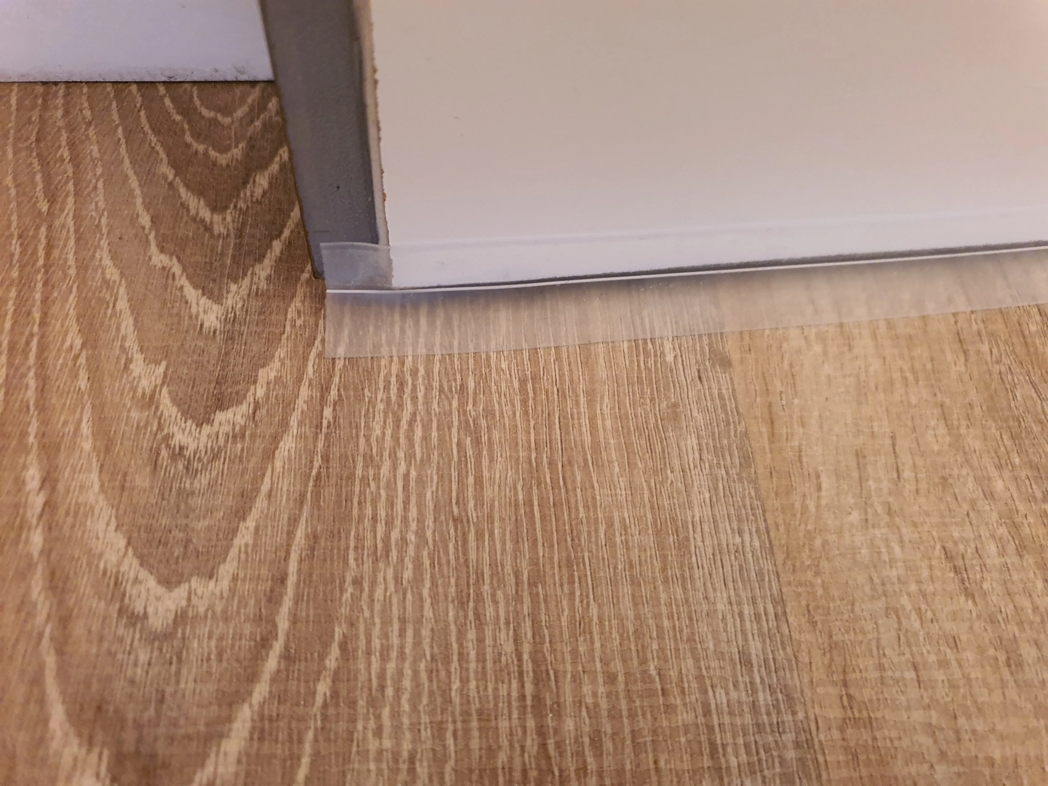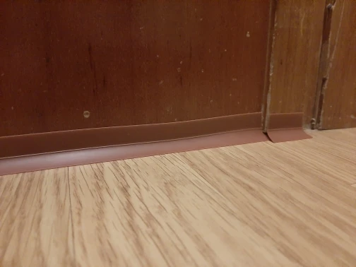 Заклеил щель между шкафом и стеной. Держится крепко. Пока все отлично.