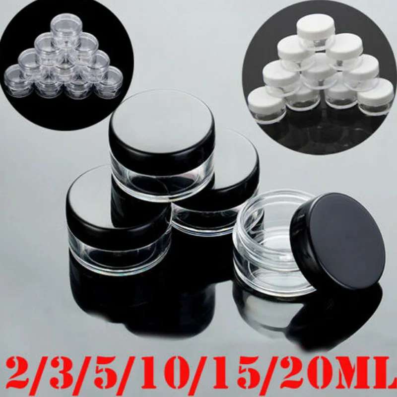 Пустые пластиковые прозрачные баночки для косметики, флаконы для косметики, лосьона, крема для лица, 10 шт., 2 г, 3 г, 5g, 10 г, 1 5g, 20 г