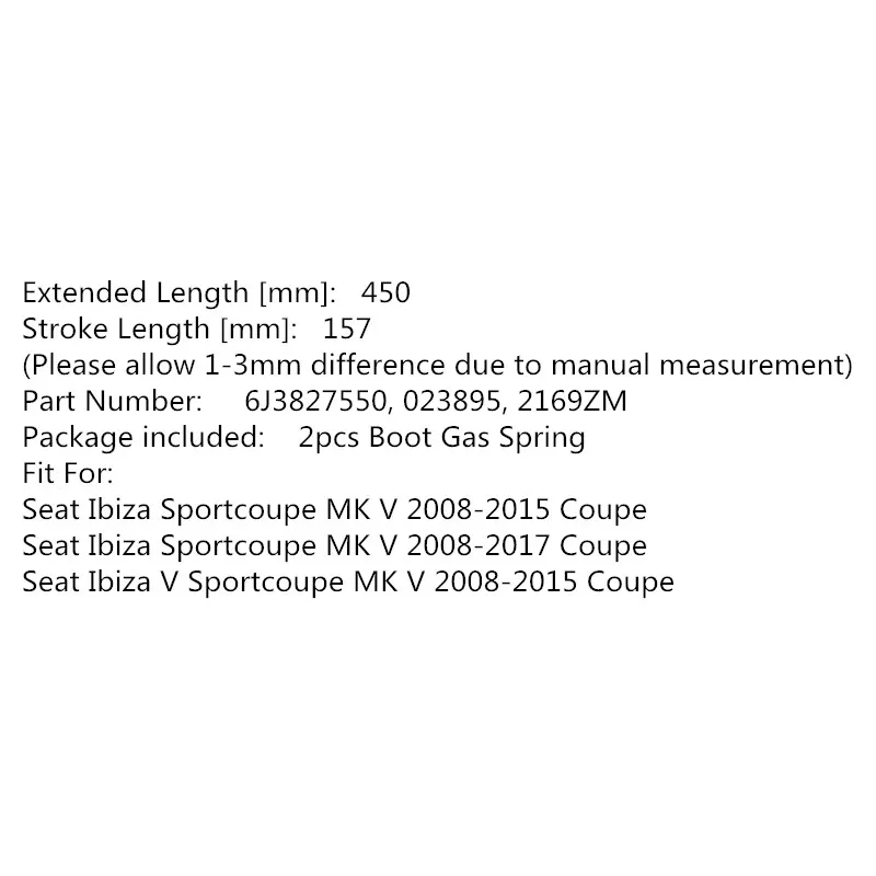 Опоры газовой пружины для багажника Seat Ibiza, Ibiza V, MK V 2008-2017, 2 шт.