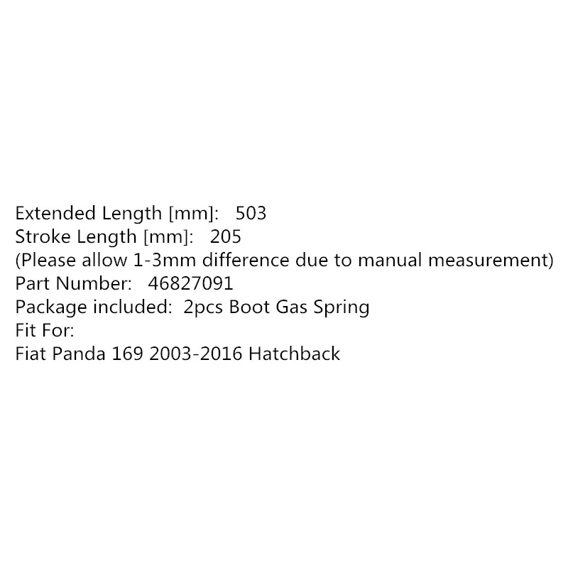 Удлиненная Длина [мм]: 503 Длина хода [мм]: 205 (Замеры сделаны вручную, поэтому возможны отклонения на 1-3 мм) Номер детали:46827091 Посылка включает в себя:2 шт. газовая пружина для ботинок Подходит для:Фиат панда 169 2003-2016 хэтчбек Характеристика: Один год гарантии качества Специальный герметичный Направляющий Блок останавливает протекание под высоким давлением. Вогнутое уплотнение предотвращает утечку масла. Стальной круглый диск на спине для прочности. Цилиндр изготовлен из бесшовной стальной трубы. Высокая точность шлифовки. Длительный срок службы. Детали поршня для самостоятельной очистки обеспечивают плавную работу и стабильную производительность. Легко устанавливается с помощью простых ручных инструментов. Оплата: Мы принимаем Paypal и другие основные кредитные карты через Paypal для оплаты. Доставка: Мы отправляем нашу продукцию выбранным способом доставки в течение 4 дней. Отзывы: Если товар неисправен, пожалуйста, сообщите нам, прежде чем оставить отрицательный отзывы, мы предоставим вам удовлетворительное решение. Ваши положительные отзывы будут высоко оценены. Свяжитесь с нами: При возникновении любых вопросов во время покупок в нашем магазине, пожалуйста, свяжитесь с нами.