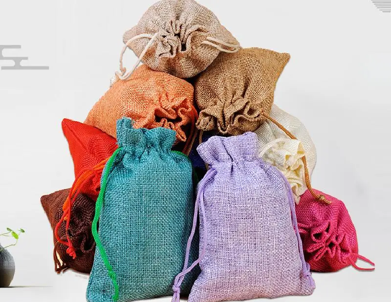 50 шт.лот 15x20 см джутовые льняные мешочки на шнурке для свадьбы рождественского подарка упаковочные пакеты поставки с возможностью печати логотипа