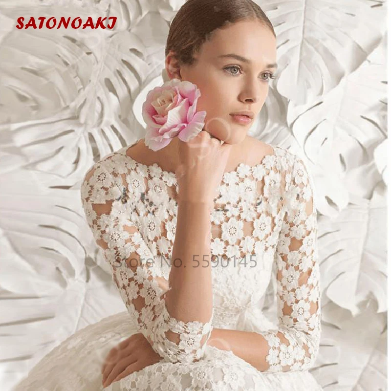 Винтажное прозрачное свадебное платье с длинным рукавом, ТРАПЕЦИЕВИ...
