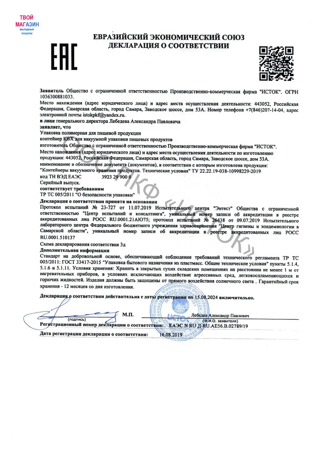 Товар пришел быстро. Контейнеры качественные. Но вот, система откачки воздуха, под вопросом. Очень слабый насос, выкачивает только, около четырех качков. Наверное, нужен электрический насос, что б от души откачать. Будем думать...