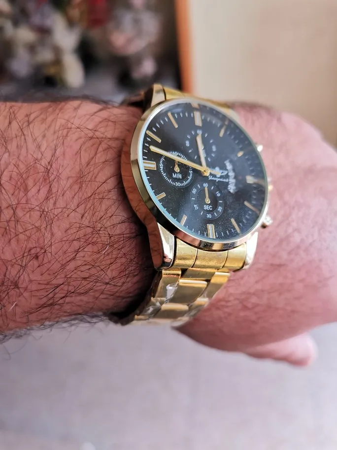 Я думаю, что это хорошие часы, хороший ремешок и оттенок циферблата, они не шумят. Вы знаете tic-tac. Он пришел ко мне вовремя и хорошо защищен, я пропустите коробку для оптимального внешнего вида