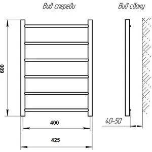 Полотенцесушитель электрический Тера Ребро 400х600 с греющим кабелем, 4 перекладины (ПСН-10-01)