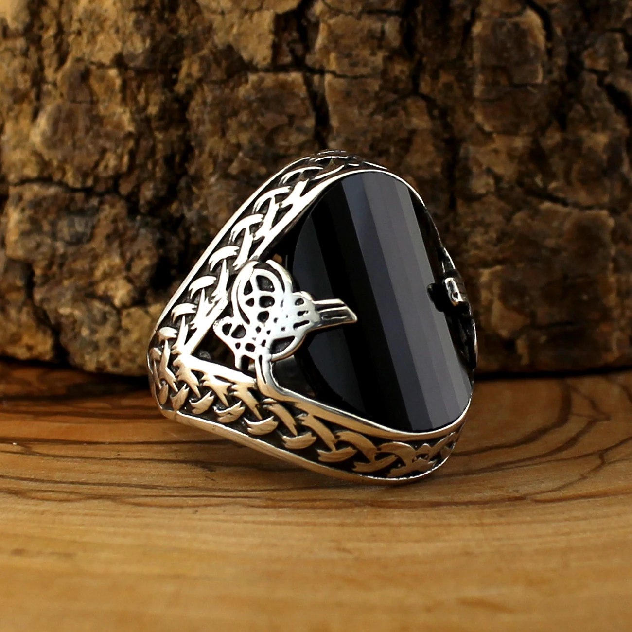 Турция Ювелирные Изделия Настоящее Чистое Стерлингового Серебра 925 Натуральный Камень Кольцо Для Мужчин Женщин Высокое качество Ручной Работы Мода Винтаж Ретро Подарок Агат Оникс Циркон Аксессуар В Турецком Стиле