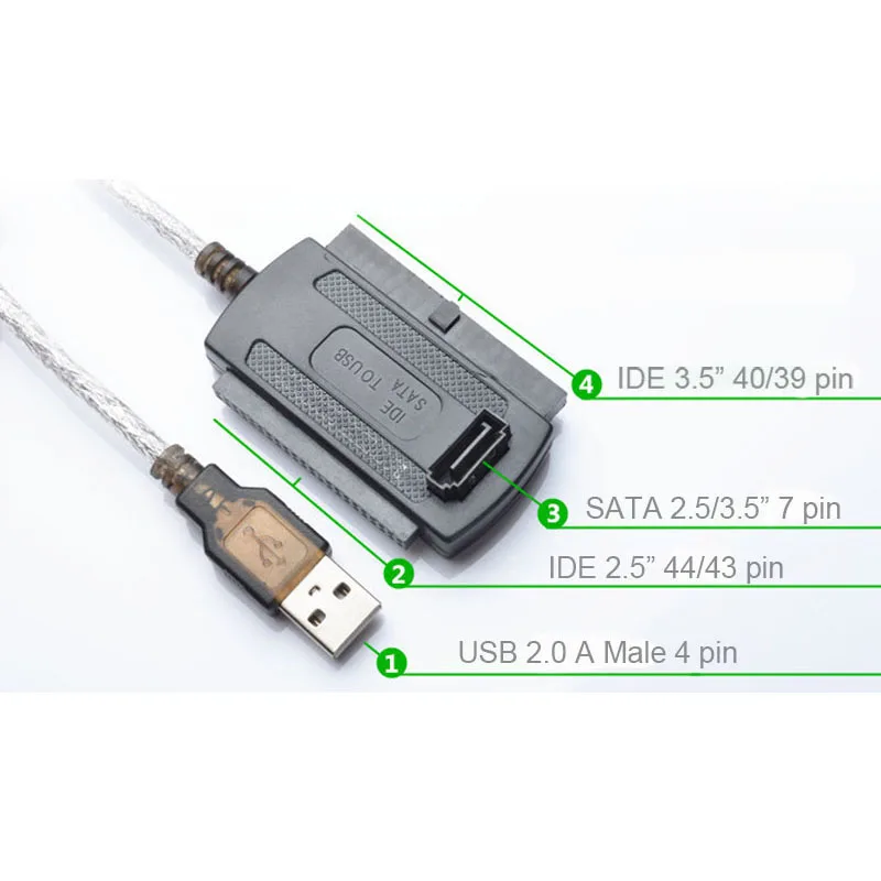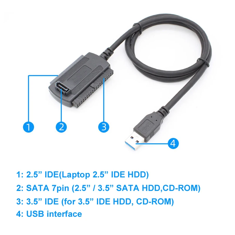 Это устройство поддерживает последнюю версию по 2,5 "/3,5" IDE/SATA HDD/SSD жёсткий диск тормозные диски и 5,25 "файлы для CD/DVD-диски, на то, чтобы ваши диски активный через USB порт к компьютеру. Кроме того, он позволяет передавать данные на все три жестких диска одновременно или среди 3 дисков.С интерфейсом USB 3,0 устройство поддерживает скорость передачи данных до 5 Гбит/с, но фактическая скорость передачи ограничена настройкой подключенного устройства. Адаптер также совместим с USB 2,0/1,1.Поддержка 6 ТБ, этот адаптер является идеальным инструментом для дубликата, копия, резервное копирование или передачи больших объёмов данных с одного диска на другой.Конструкция включения/выключения для защиты дисков жесткого диска делает его удобным в использовании или выключении. Такая легкая и простая работа эффективно увеличивает срок службы устройств.Адаптер настолько компактный, что вы можете взять его в карман и использовать его, когда захотите. Это действительно идеальное решение для преобразования данных и хранения для широкого круга пользователей. ПараметрыЭтот конвертер может поддерживать до трех дисков одновременно;Поддерживаемые диски: 2,5 "/3,5" SATA HDD/SSD; 2,5 "/3,5" IDE HDD; DVD-ROM, CD-ROM, CD-RW, DVD-RW, DVD + RW;Совместимые системы: Windows8/7/10/Vista/XP/Mac OS 9/10/Linux;Поддерживает диски с емкостью до 6 ТБ;Поддержка скорости до 5 Гбит/с;Обратная совместимость с USB 2,0/1,1;Переключатель ВКЛ/ВЫКЛ для защиты жесткого диска;DC Питание 12V для 3,5 "устройств разных мировых стандартов;Светодиодный индикатор активности, Plug & Play, простой, надежный и стабильный Содержимое посылкаКонвертер USB 3,0 на Sata /IDE x1pcUSB 3.0 кабель «Папа-папа» 3.3ft x1pc12V/2A (DC5.5 * 2,1) адаптер питания x1pcMolex 4pin кабель питания x1pc