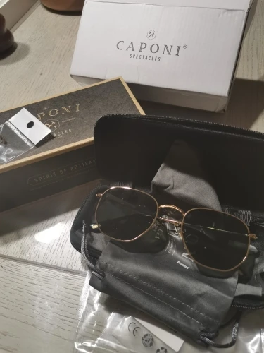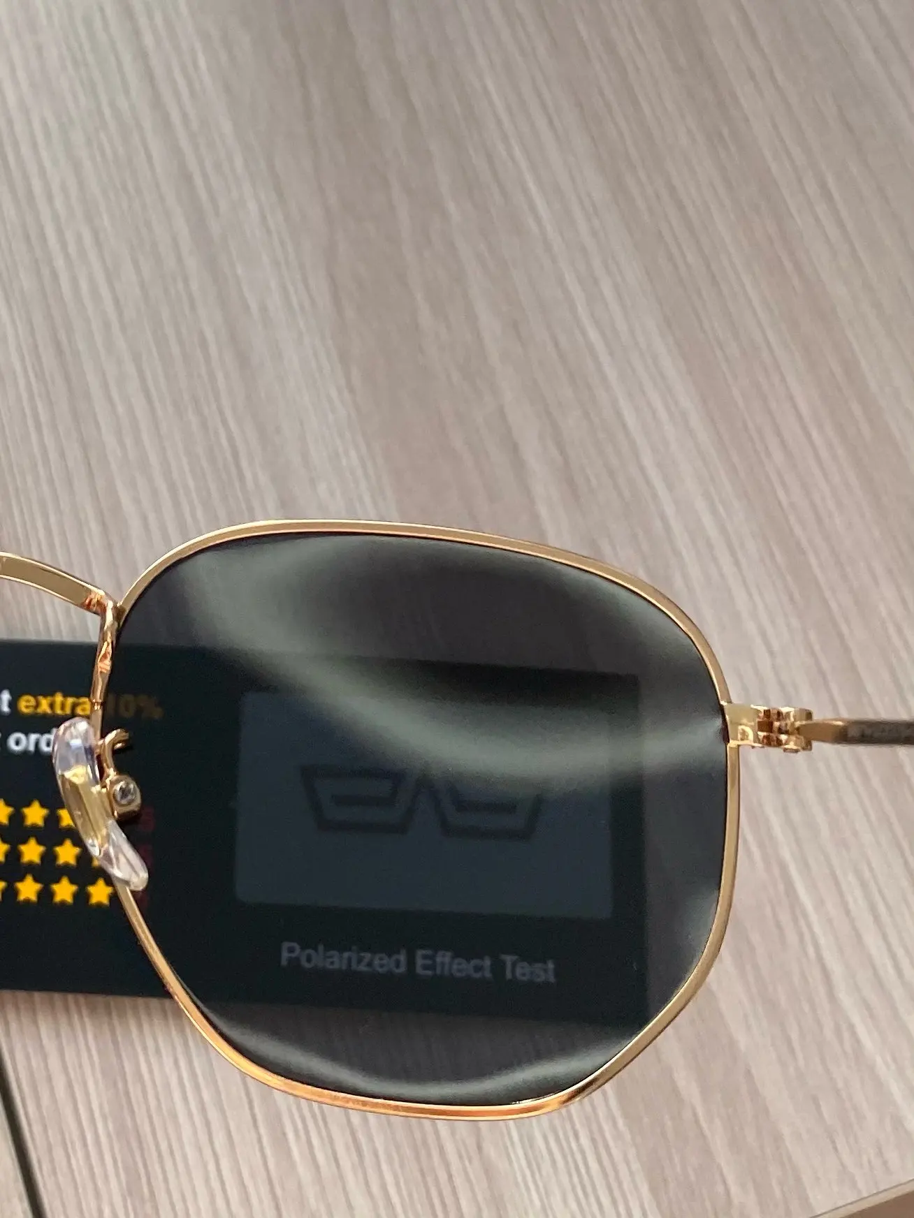 Классные очки, есть карточка для проверки поляризации. Доставка до Москвы 12 дней. Упакованы в фирменную коробку, в комплекте 2 чехла ( на замочке и мешочек), и ещё тряпочка для протирания очков. Единственный незначительный минус - пришлось немного подровнять дужку, тк при надевании они сидели кривовато.