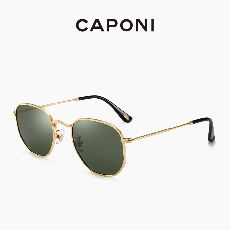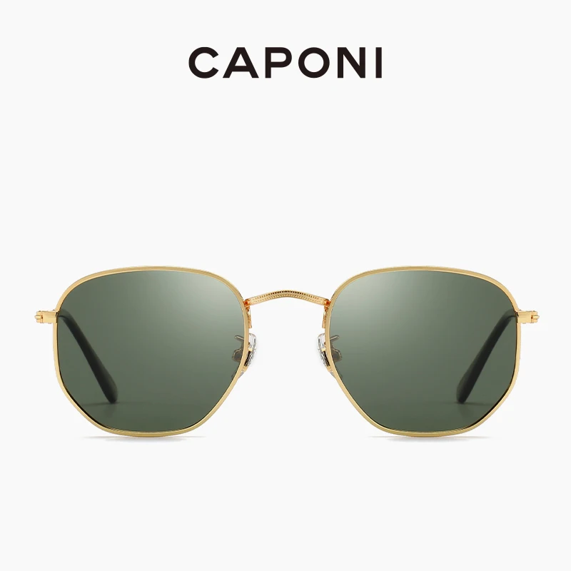 Женские Классические солнцезащитные очки CAPONI, солнцезащитные очки в стиле ретро с защитой UV400, поляризационные модные очки с золотым металлическим шестигранником CP1081