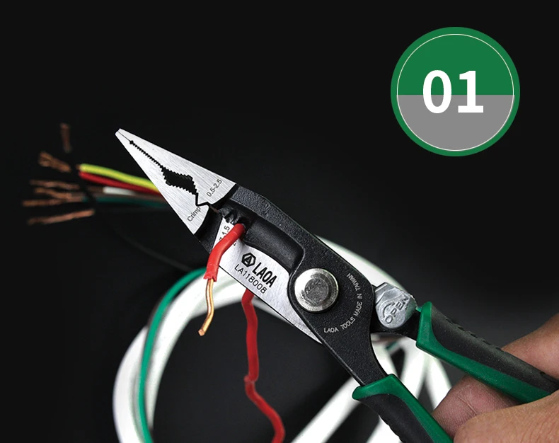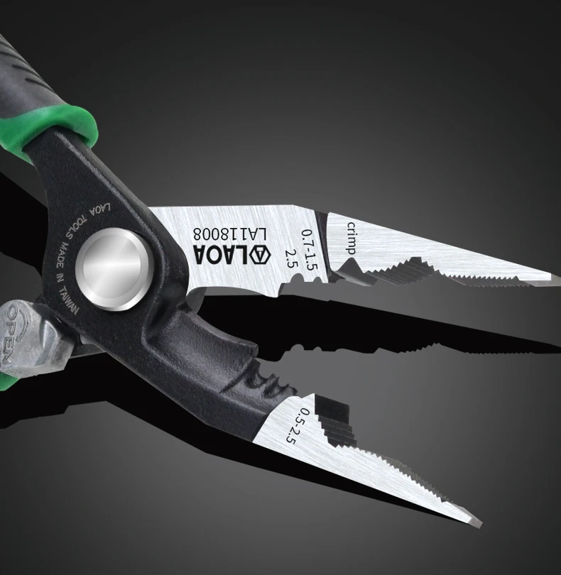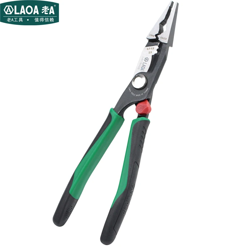 Инструменты для обжима LAOA, 8 дюймов, игольчатые кусачки плоскогубцы многофункциональный инструмент, инструмент для зачистки проводов Aalicate, плоскогубцы с длинным носом и функцией блокировки