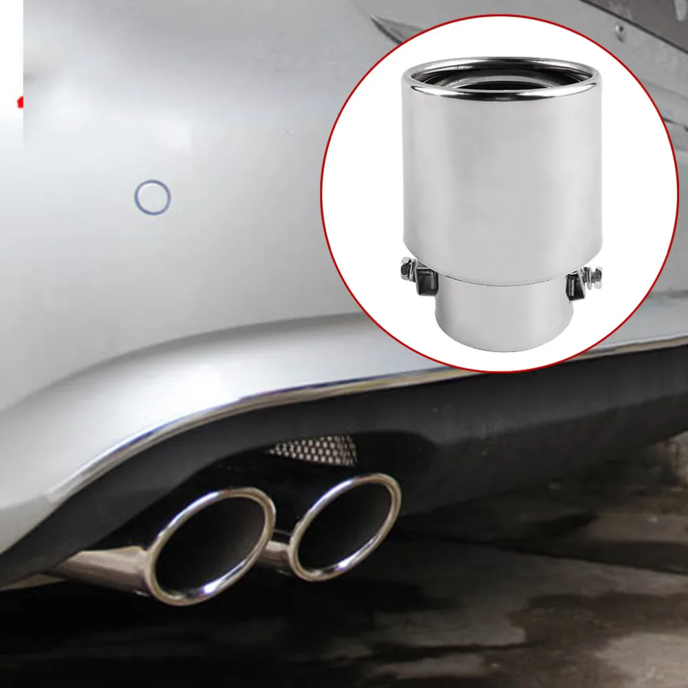 Универсальный наконечник выхлопного глушителя автомобиля, круглая труба из нержавеющей стали, хромированный наконечник выхлопного глушителя, серебристый