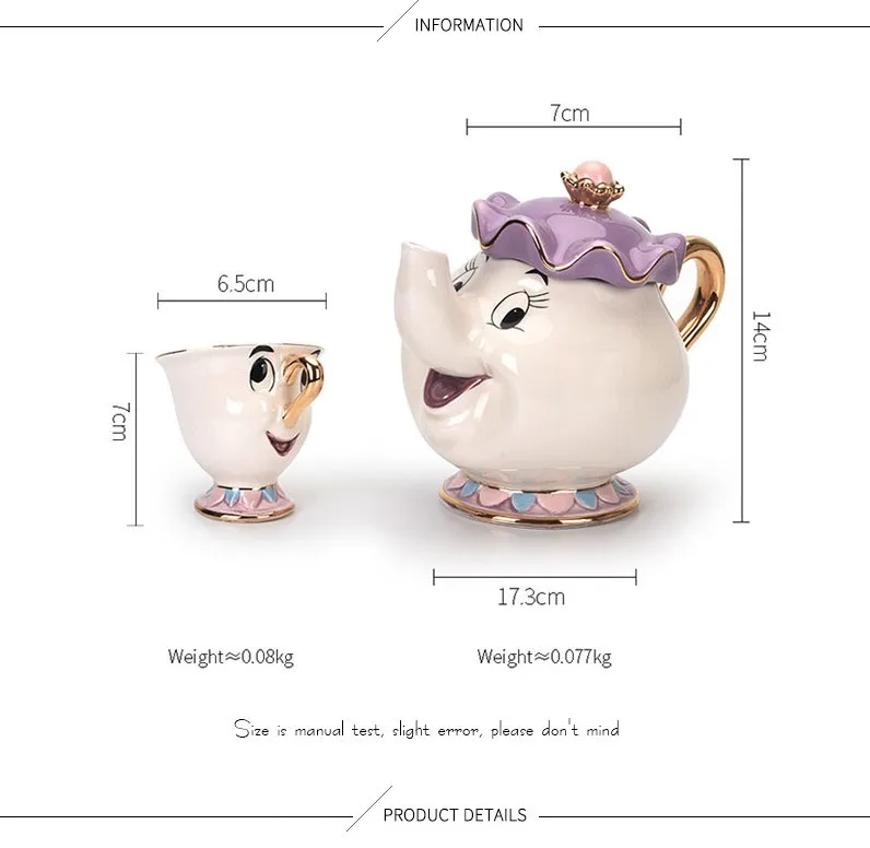 Новинка, мультяшный чайный горшок Красавица и Чудовище, кружка Mrs Potts, чаша для чая, один набор, милый Рождественский подарок, быстрая доставка
