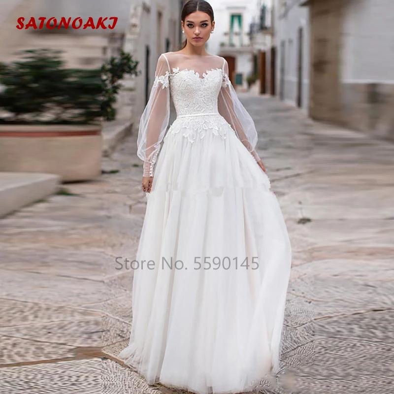 2021 иллюзионные Свадебные платья с глубоким круглым вырезом в стил...