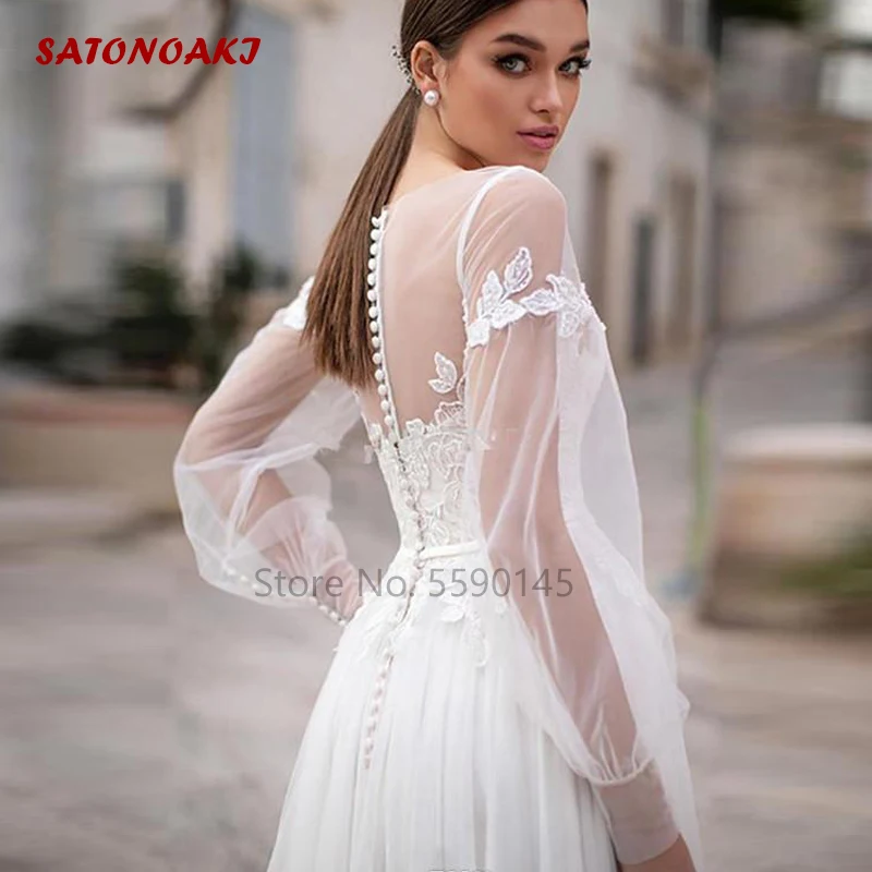 Свадебное платье из фатина с длинным рукавом и пуговицами