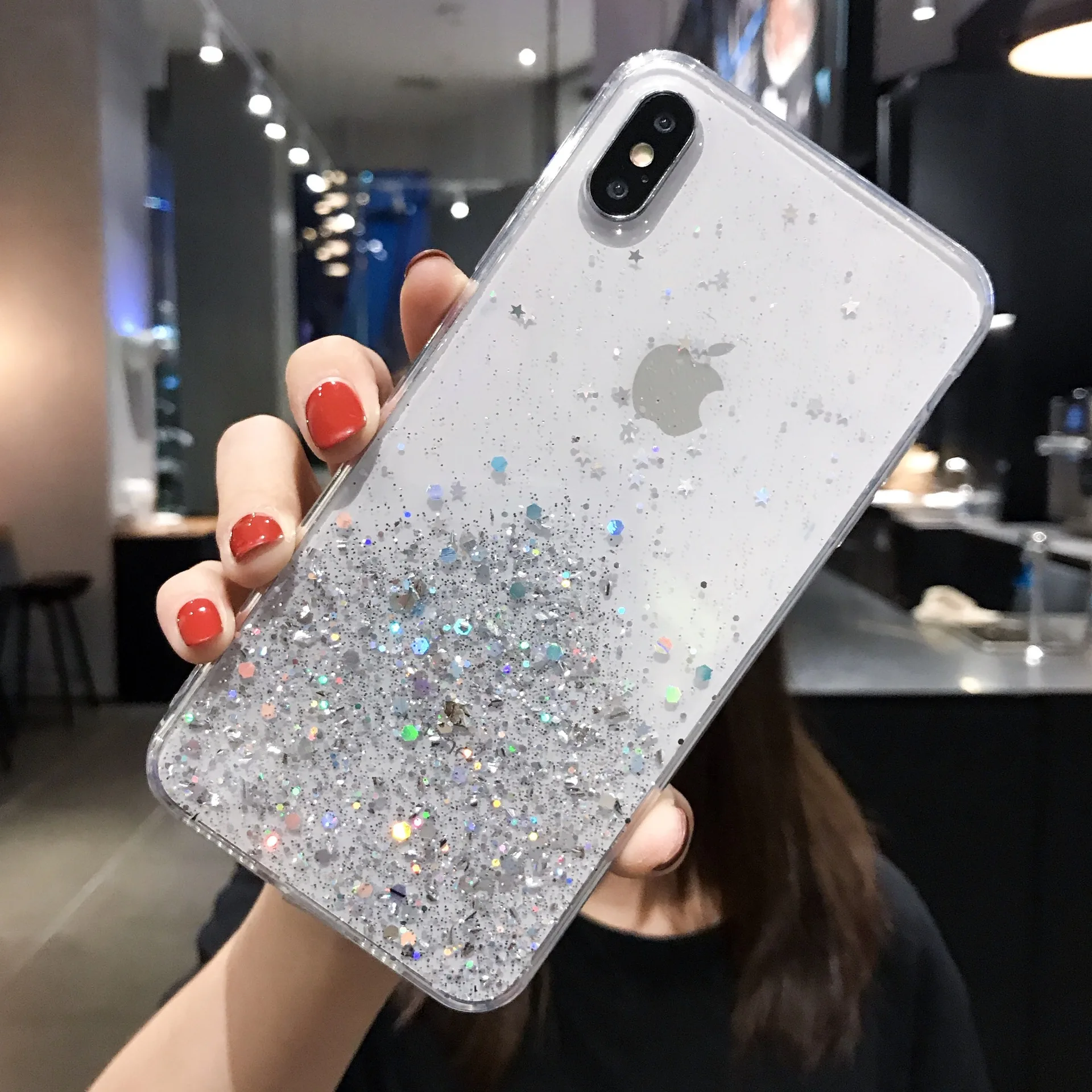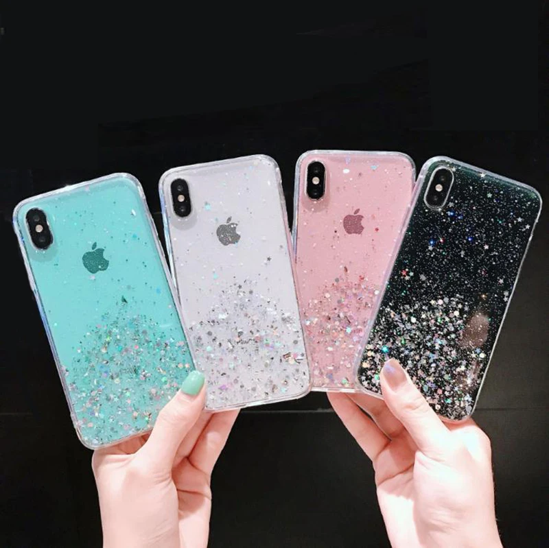Прозрачные и блестящие чехлы для телефонов HUAWEI Y5, Y6, Y7, Y9, Prime2019, Honor7A, 8S, 9X, 10i, 20 lite, силиконовый чехол с серебряными блестками