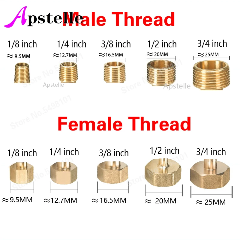 Латунные соединители для труб с наружной и внутренней резьбой 18 дюйма, 14 дюйма, 38 дюйма, 12 дюйма, Латунный переходник для муфты
