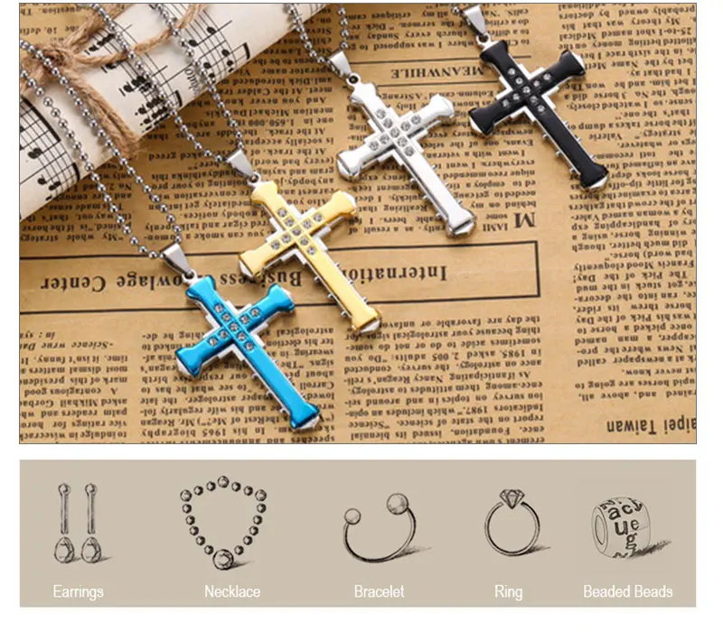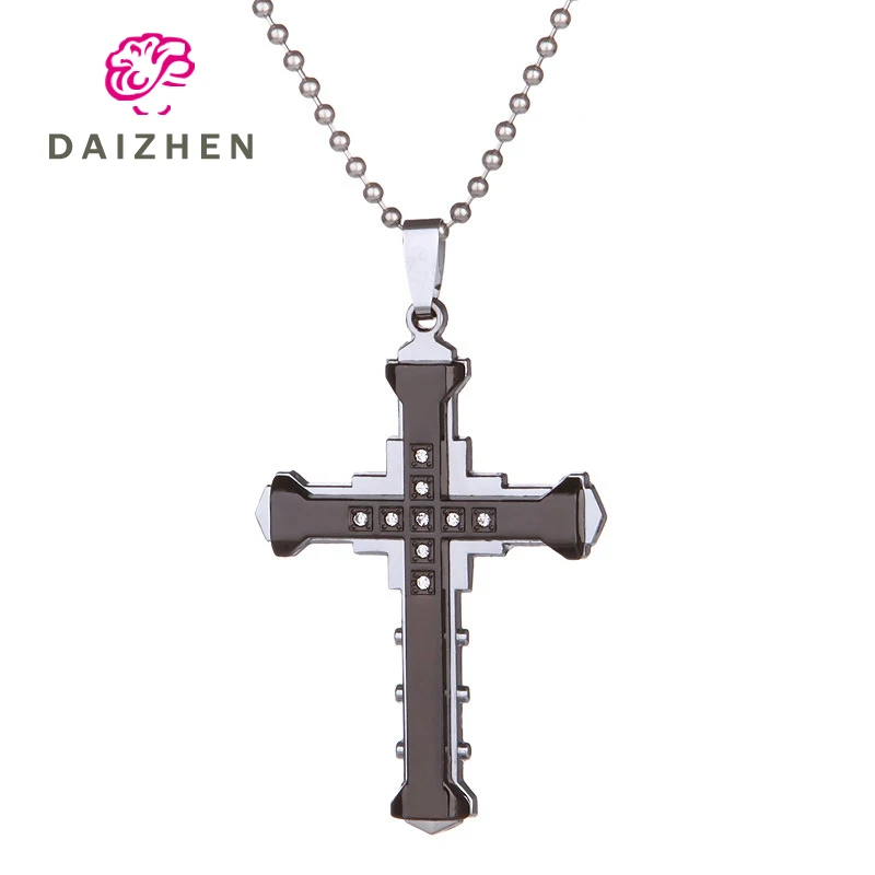 Новинка, лидер продаж, ожерелье для мужчин с подвеской в виде креста с кристаллами Иисуса, ожерелье с золотым, серебряным и черным крестом, модные ювелирные изделия, Рождественская мода