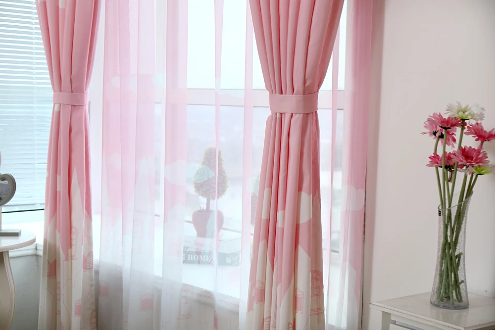 Розовое сердце занавеска из тюли с вышивкой для маленьких девочек; ...
