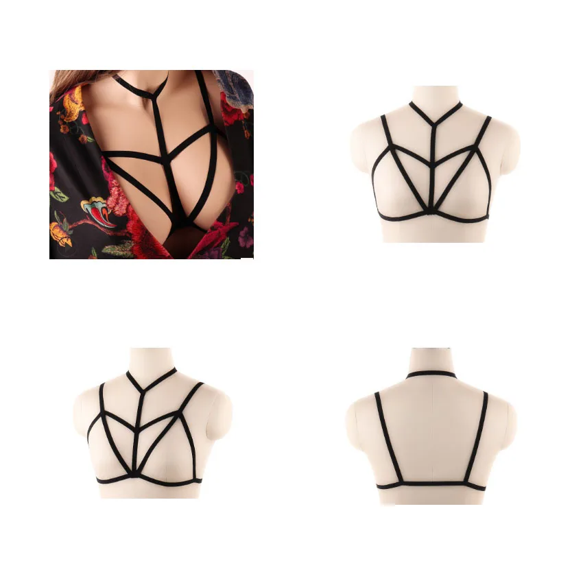 Женский бюстгальтер без чашек, черная эластичная портупея