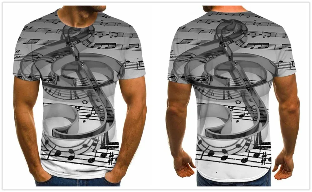 Футболка Летняя мужская одежда Топ с принтом музыкальных нот Новинк...