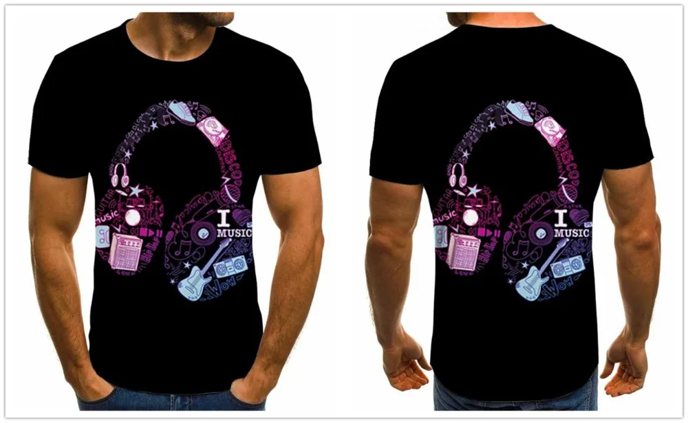 Лето 2020, модная футболка с 3d рисунком музыки и фото, футболка ун...