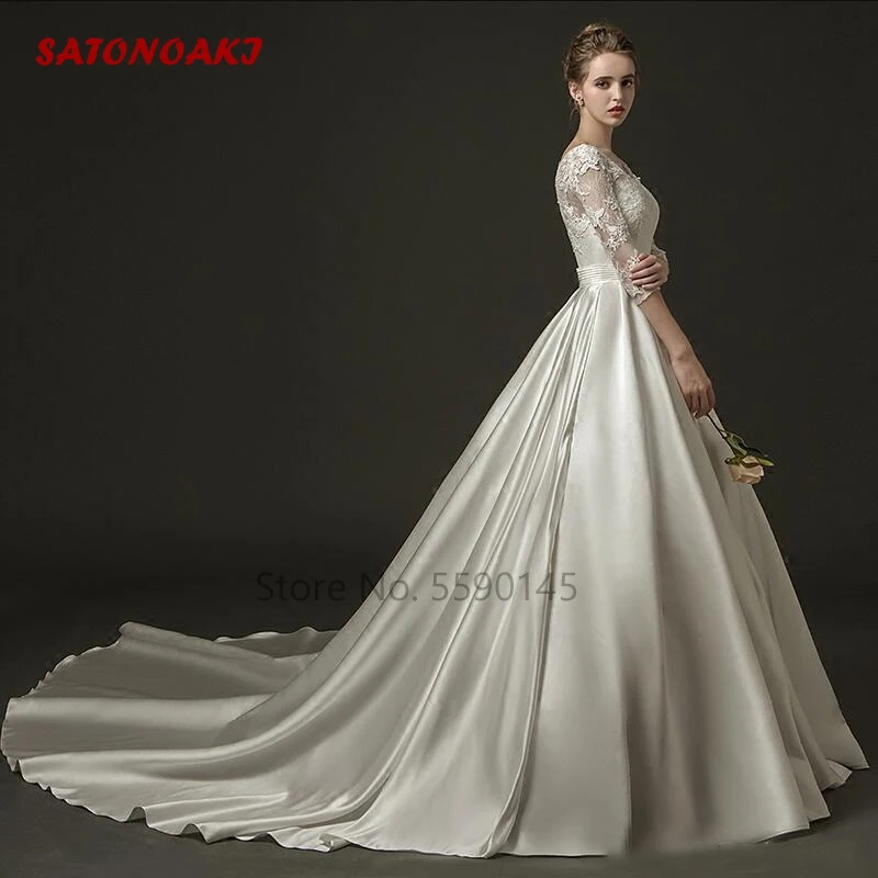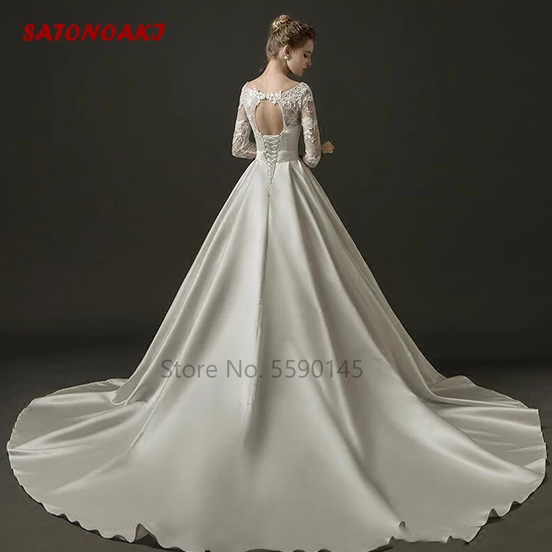 Свадебное платье с вырезом лодочкой, винтажное атласное платье-трап...