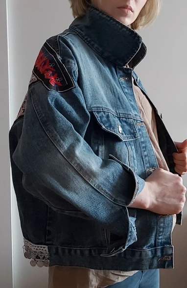 Отличная куртка, джинса качественная. Размер на российский S (42-44) оверсайз. Монетки на подоле звенят) Из функциональных недостатков - всего 2 небольших вшитых нагрудных кармана, смартфон не влезет, но в целом куртка очень понравилась, соответствует описанию продавца