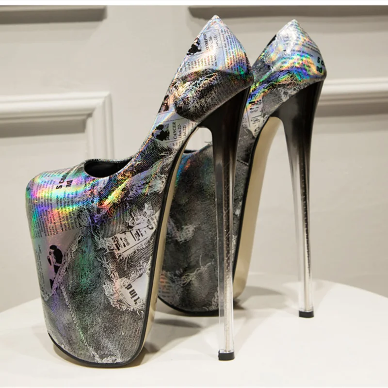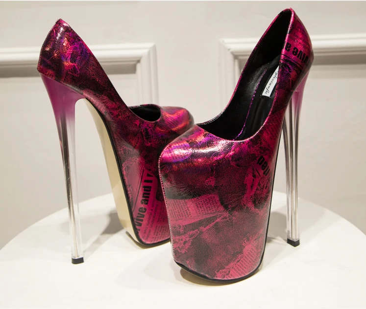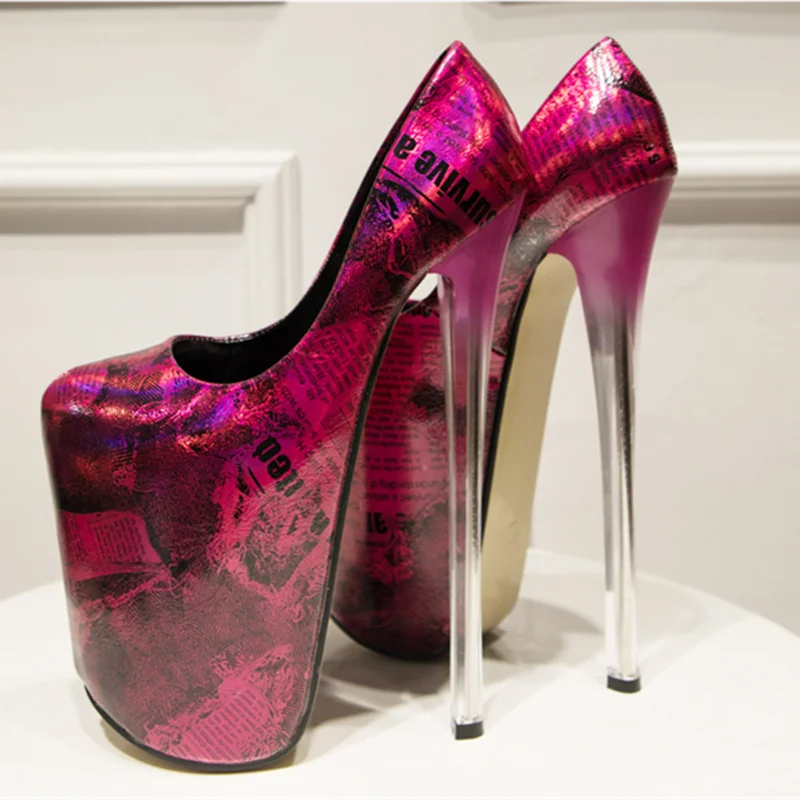 Туфли женские на очень высоком каблуке 22 см, пикантные Модные Туфли-лодочки на платформе с этническим принтом, Фетиш стриптиз, большие размеры