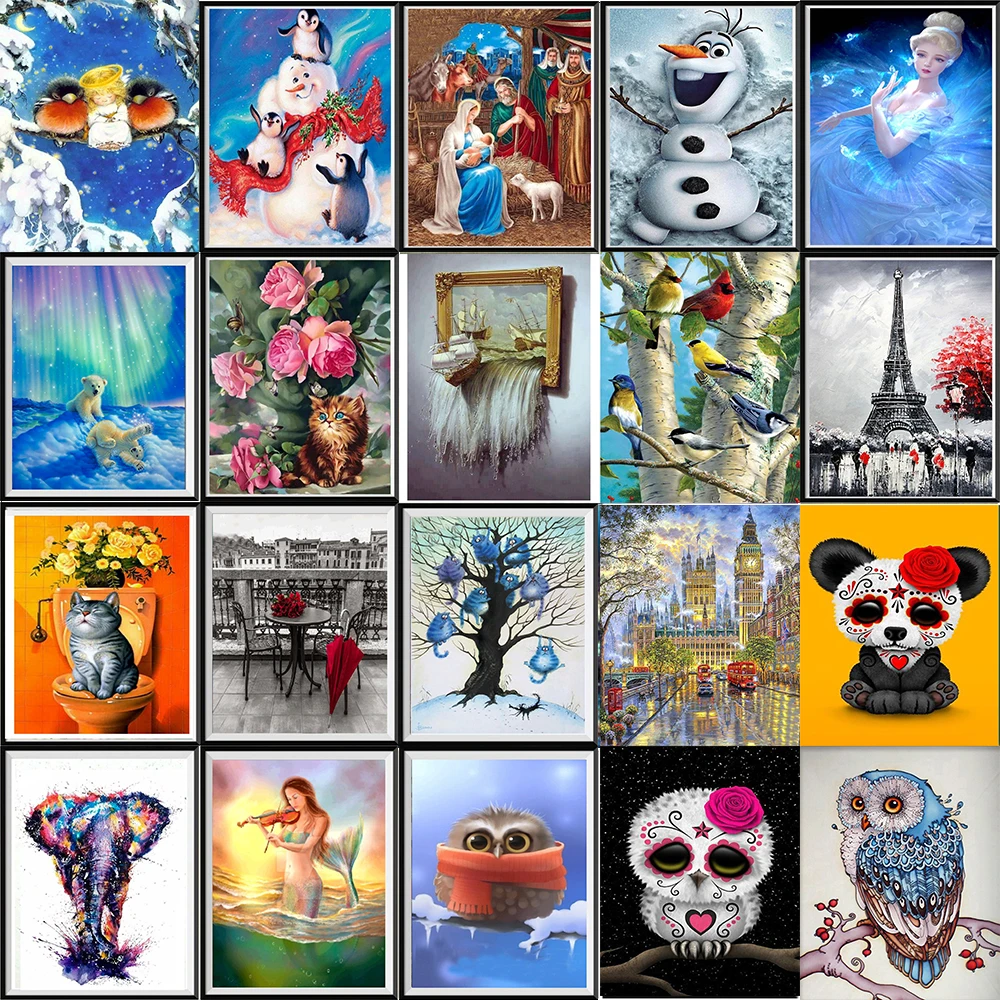 Пейзаж 5D алмазная картина Полный алмаз снеговик мультфильм животно...