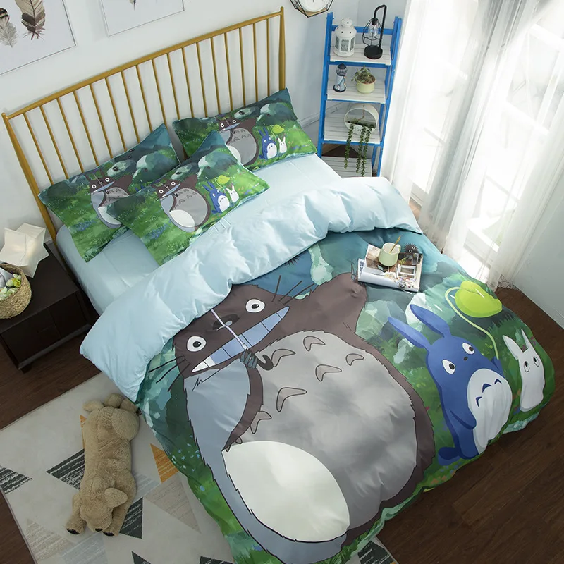 Новое поступление, хлопковый комплект постельного белья с изображением японского соседа Тоторо, пододеяльник для детей, Комплект постельного белья, роскошный комплект из 150 постельного белья, 3D одеяло, домашний текстиль, 4 предмета, бесплатная доставка