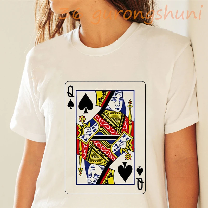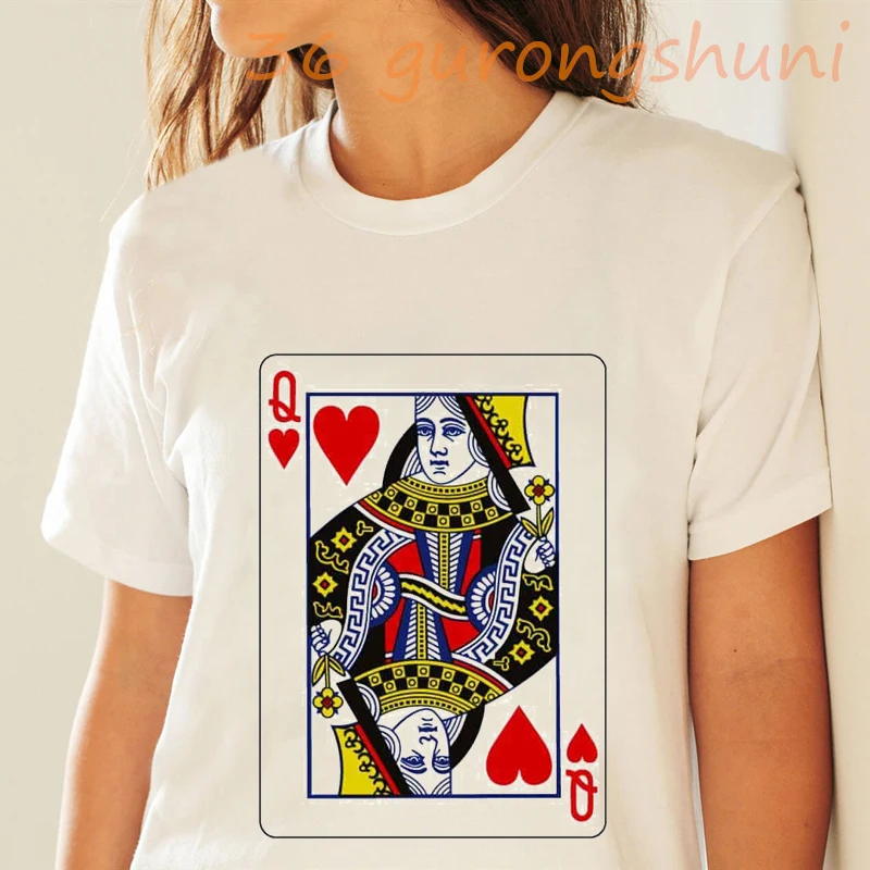 Женская футболка с принтом игральных карт, тонкая футболка с принтом в стиле Харадзюку покер, белые топы