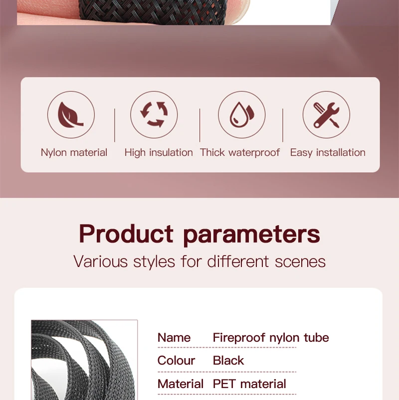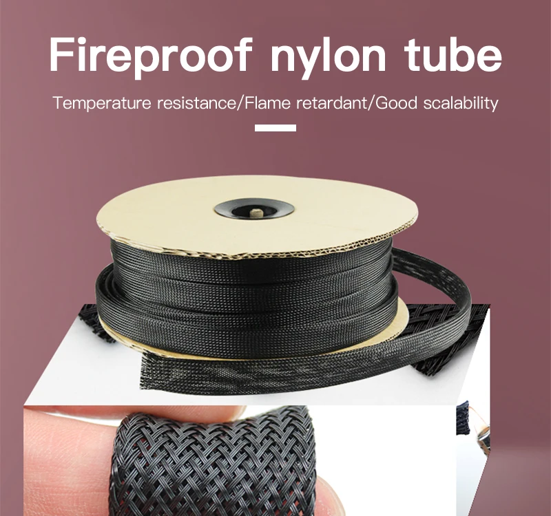 Настраиваемая 5100300 м 3 мм до мм Изолированная оплетка, ПЭТ провод, расширяемая кабельная муфта, огнестойкая нейлоновая оплетка