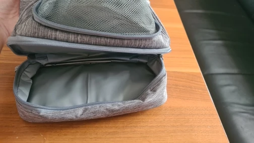 Туалетный пакет с большим количеством места для хранения. У меня еще не было возможности использовать его, но продукт кажется твердым. Водонепроницаемый карман внизу не обязательен. There is a discount with scratch (As I Tried to show it In The Last photo). Так что либо использование кармана, либо если нет необходимости, он увеличивает емкость центрального кармана.