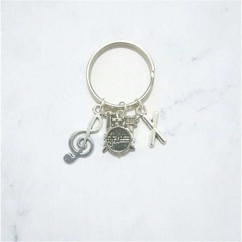 Брелок для музыкальных заметок, брелок для барабана, персональный музыкальный подарок, начальное очарование, музыкальный подарок, брелок для музыкальных инструментов