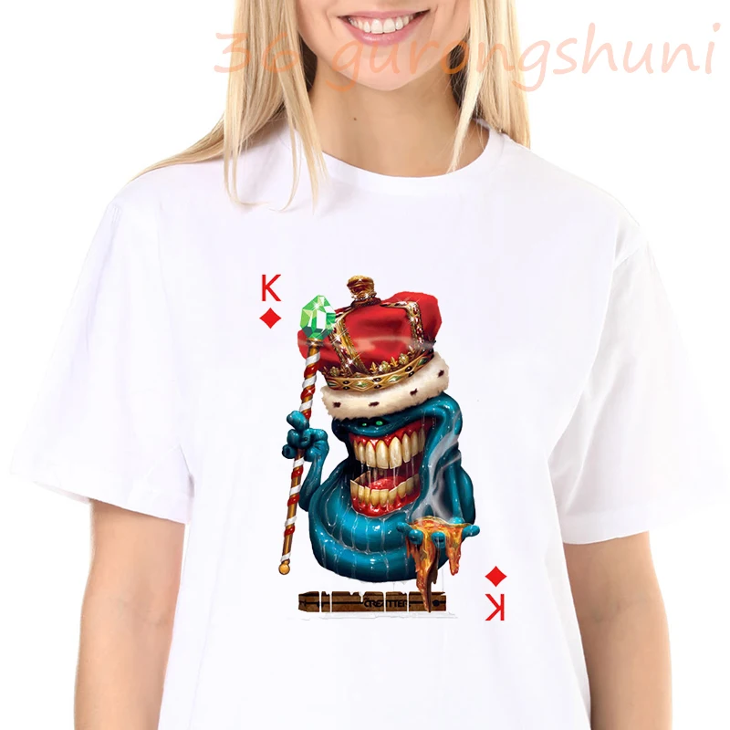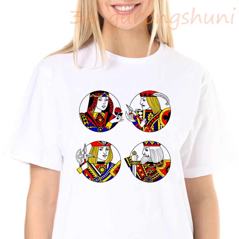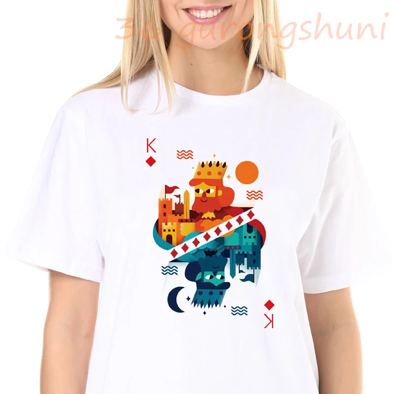 2020 футболка с игральными картами, женские повседневные летние винтажные женские футболки с коротким рукавом, топы, свободная футболка с графическим принтом в виде покера и бриллиантов