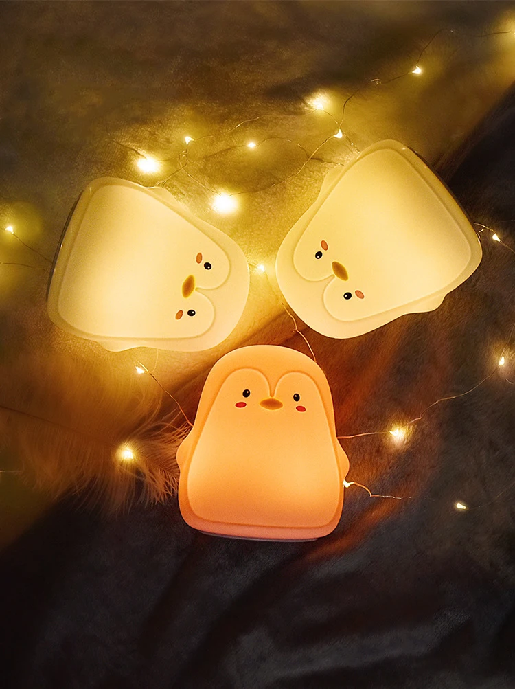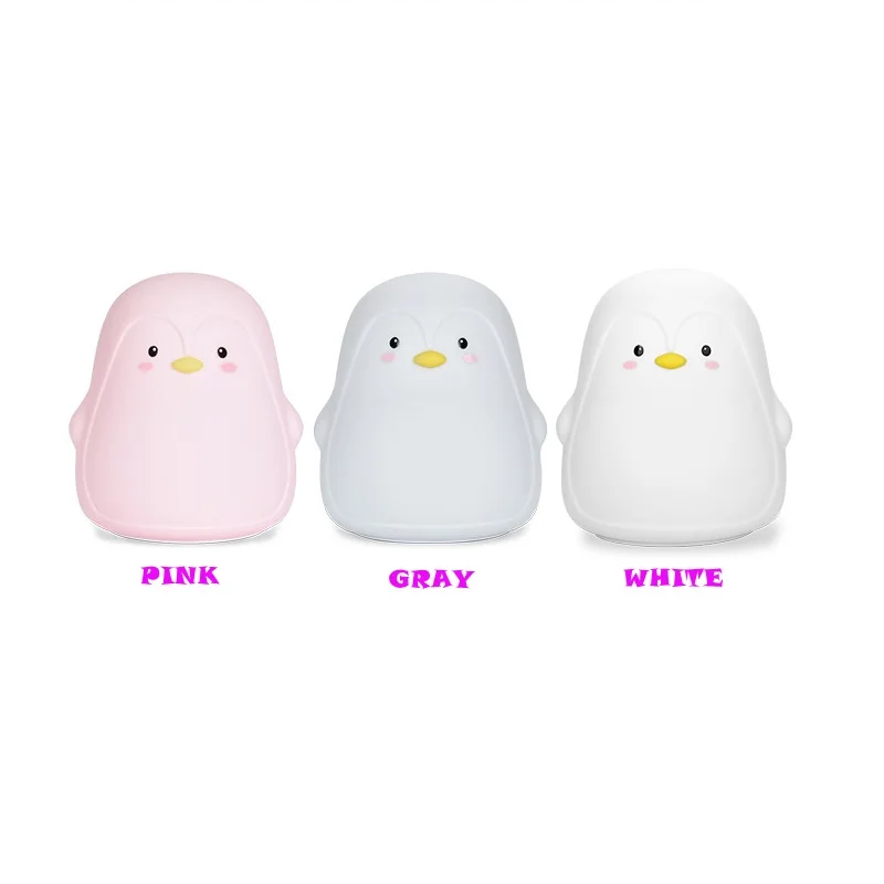 Ночной светодиодный светсветильник льник Пингвин из силикона, симпатичная форма, USB, перезаряжаемый, цветной теплый светильник, декоративная настольная лампа
