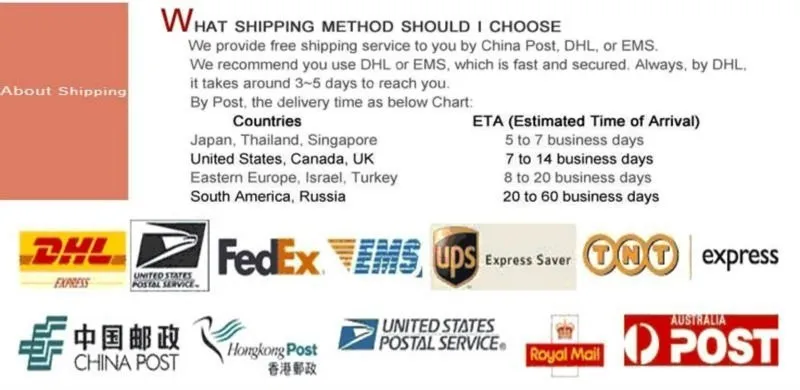 Мы принимаем смешанный заказ/оптовый заказ... Мы рады построить долгосрочные деловые отношения с вами. У нас есть собственный крупный производственный завод, мы компания, расположенная в Китае, и у нас есть сильная команда, которая поддерживает транзакцию и старается сделать лучший сервис для вас, между тем Мы также поддерживаем OEM и оптовые продажи, для получения дополнительной информации, пожалуйста, не стесняйтесь связаться с нами в любое время! Мы предоставим вам самую низкую цену и самое быстрое время доставки .. У нас есть собственный крупный производственный завод, вы можете создать свой собственный стиль, который вам нравится, дать нам ваше производство, Оптовые покупки (более 10 комплектов), пожалуйста, напишите мне, или нажмите на онлайн-консультацию, мы предоставим вам самую низкую цену и самое быстрое время доставки. Доставка 1) обычно мы используем Почта Китая для бесплатной доставки. Доставка авиапочтой занимает 7-20 рабочих дней, экспресс-доставка занимает 3-10 рабочих дней. 2) иногда это может быть дольше из-за плохой погоды, траты времени на таможенное оформление. Поэтому наберитесь терпения если вы не получили товар вовремя. Если в течении тридцати дней вы так и не получили товар, пожалуйста, дайте нам знать, и мы поможем вам его отследить. Отзывы 1) ваши отзывы очень важны для нас, пожалуйста, уделите несколько секунд, чтобы оставить отличные отзывы, если вы удовлетворены нашим продуктом и обслуживанием, большое спасибо! 2) мы всегда предлагаем Вам самые низкие цены на лучшие товары и услуги.